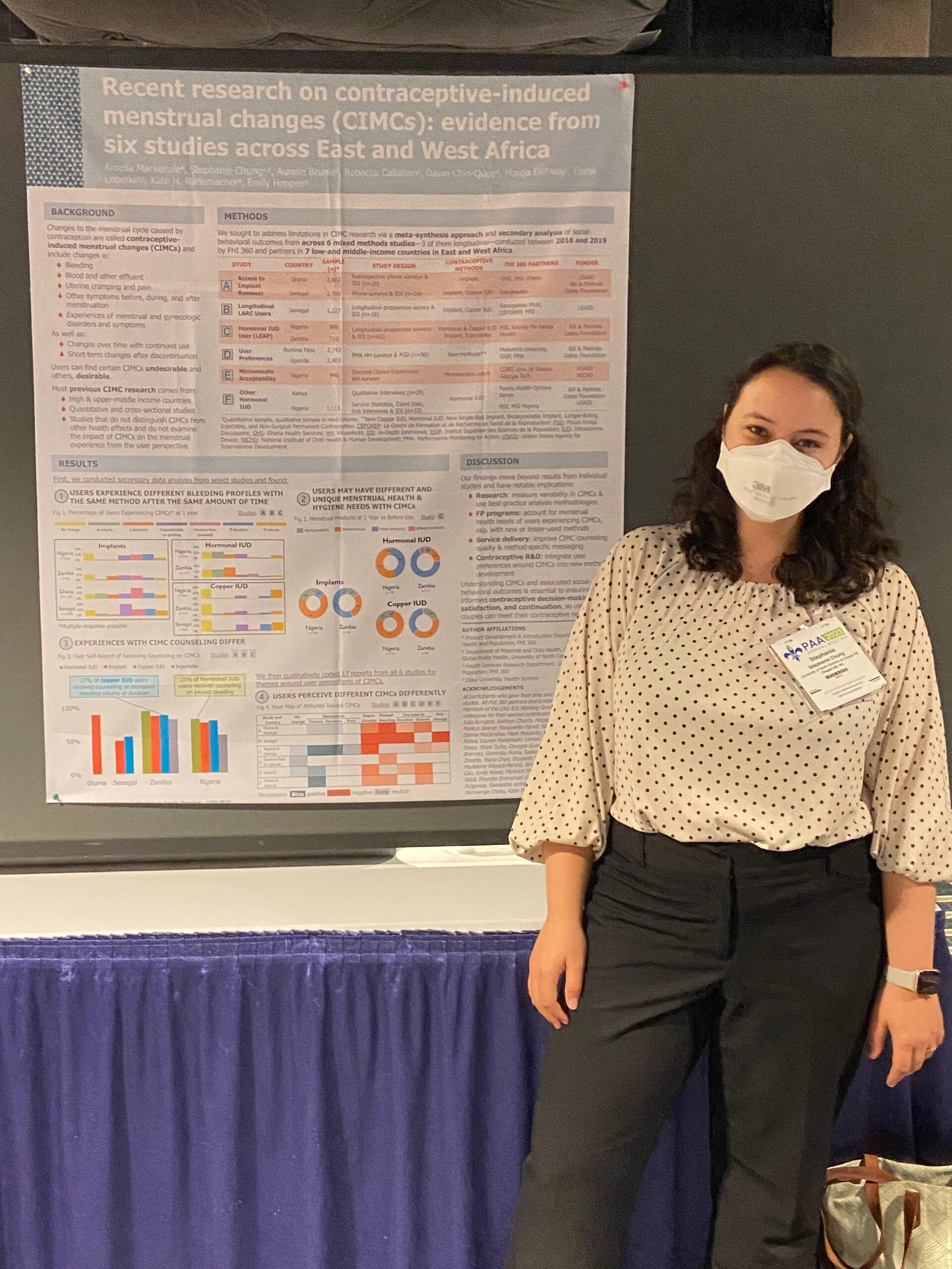 With FHI 360, I am working on a team that is developing a new patient-reported outcome (PRO) measure for reporting changes to the menstrual cycle in contraceptive clinical trials. See some our work on CIMCs here:Systematic literature review of measurements of changes to the menstrual cycleExpert consultation recommendations for how to measure and analyze CIMCs in contraceptive clinical trials
